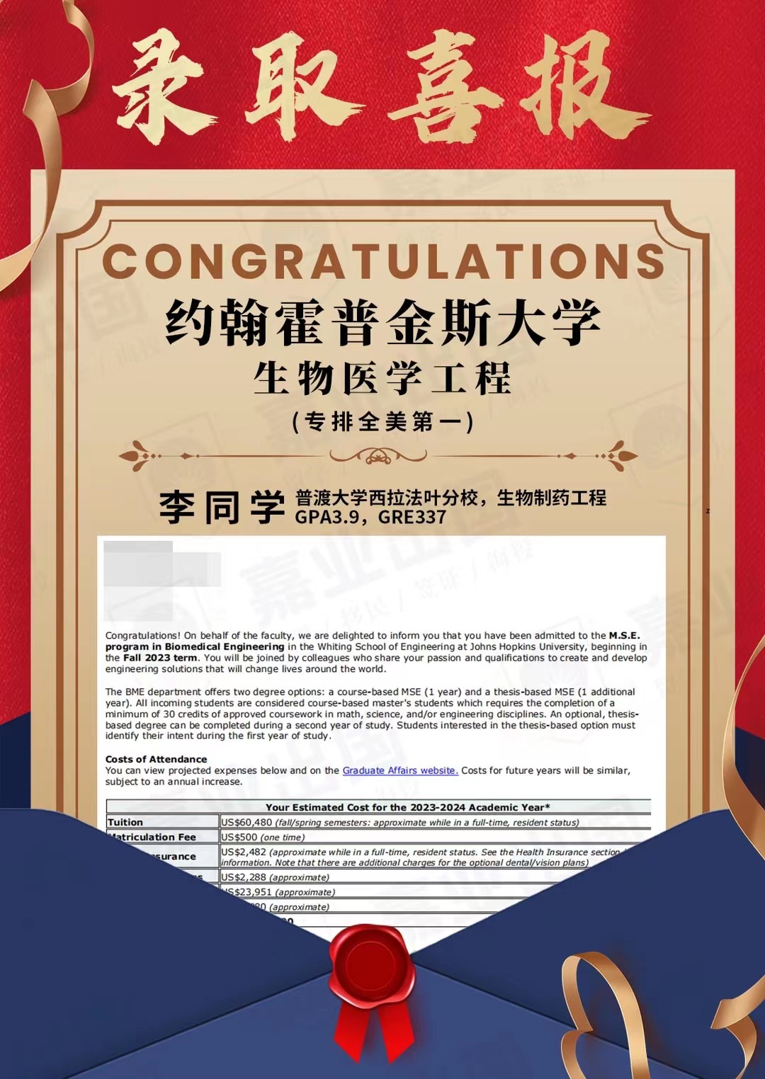 約翰霍普金斯大學Offer