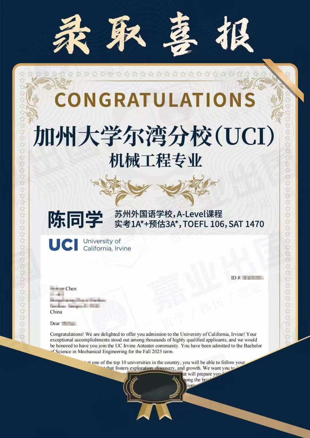 加州大學爾灣分校offer