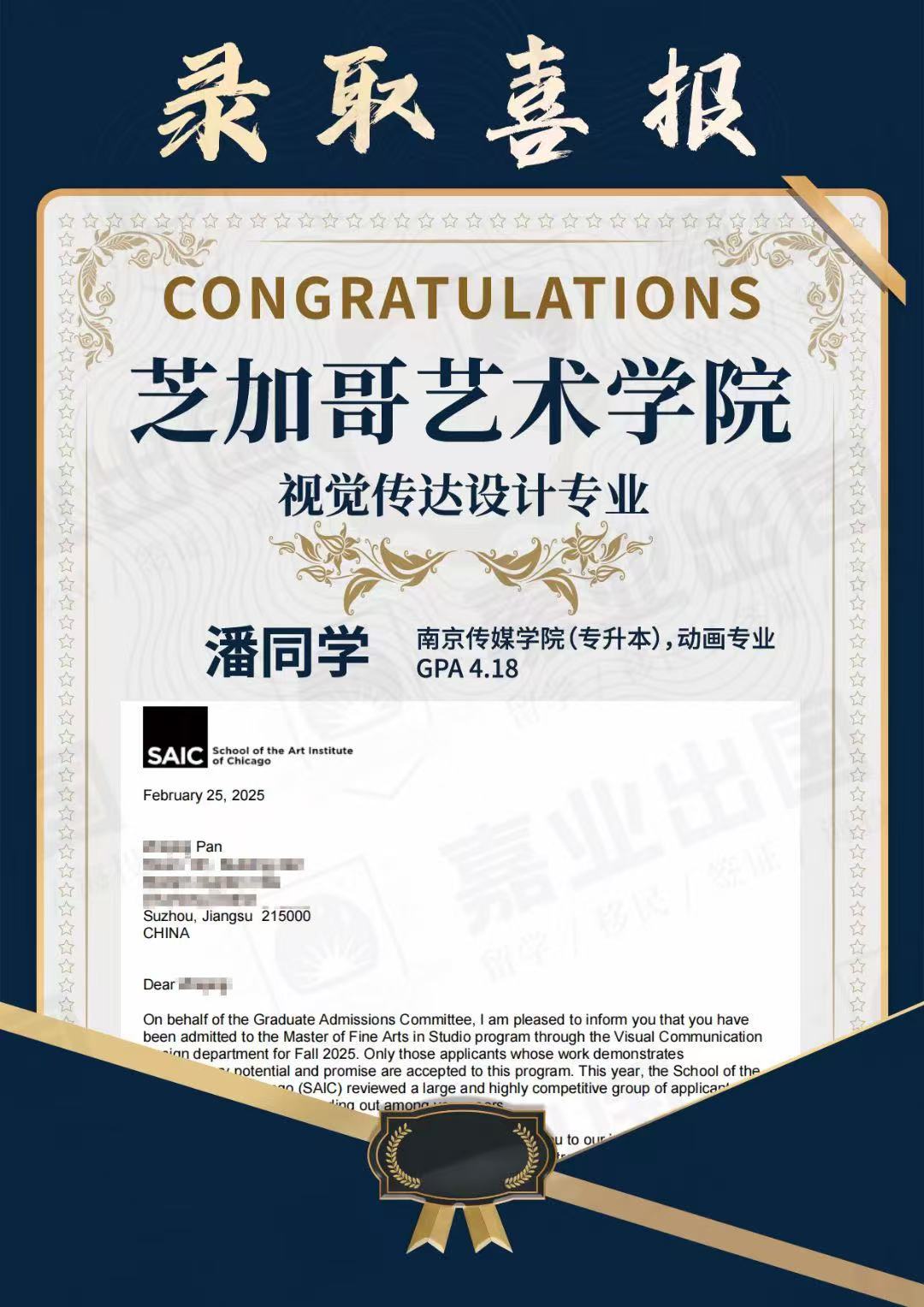 芝加哥藝術學院offer