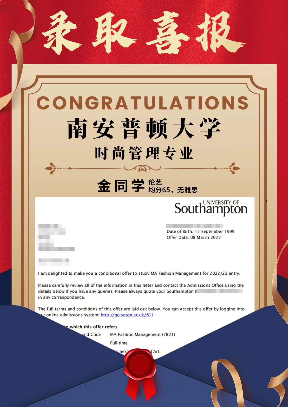 南安普頓大學Offer