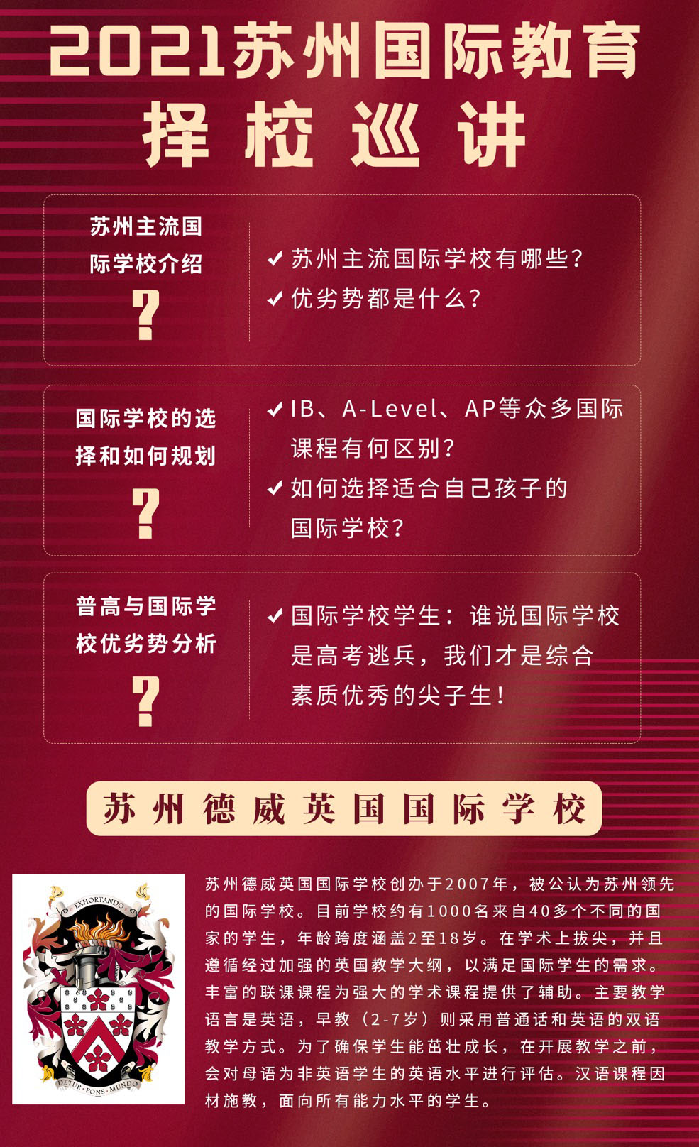 2021蘇州國際學校擇校巡演-園區(qū) 來源:未知發(fā)表時間:2023年05月09日 13:24:58瀏覽量: 文章標簽:美國留學(214)英國留學(317)加拿大留學(169)澳洲留學(93) 上一篇:2021年蘇州國際學校擇校巡講-太倉 下一篇:2021蘇州國際學校擇校巡演-吳江