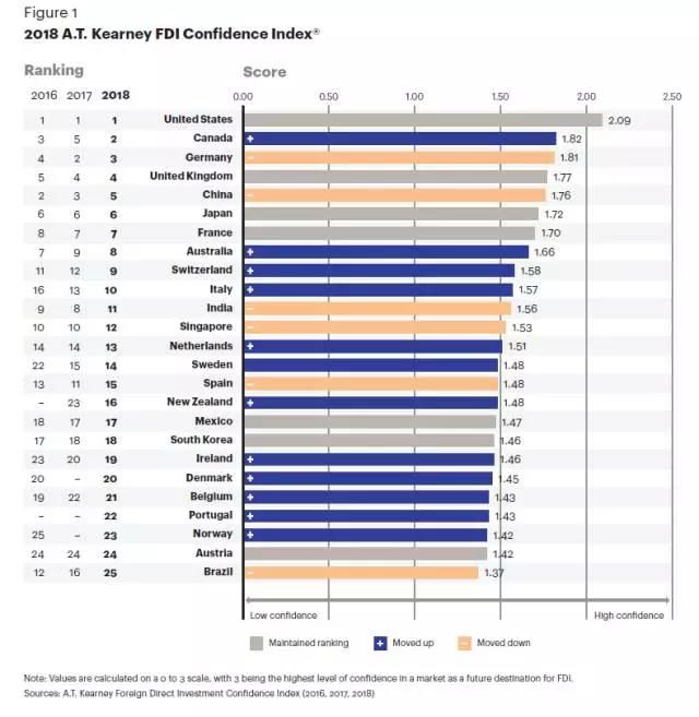 據美國咨詢公司科爾尼(AT Kearney)研究數據表明,葡萄牙第一次進入外商直接投資(Investimento direto estrangeiro)排名前25名,超過挪威,奧地利,巴西,成為第22名。